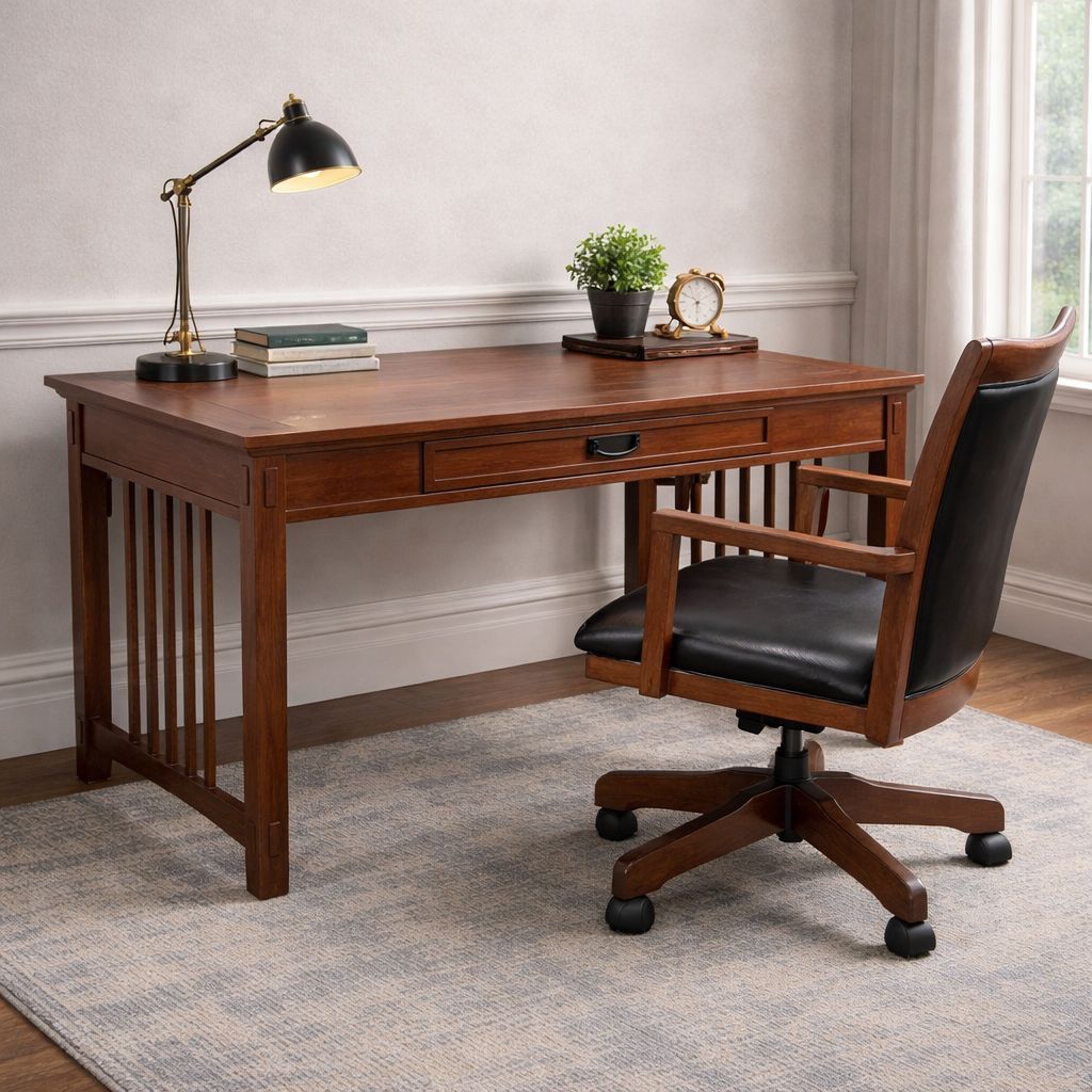 Luxury Ashley office set – solid wood desk + leather chair.