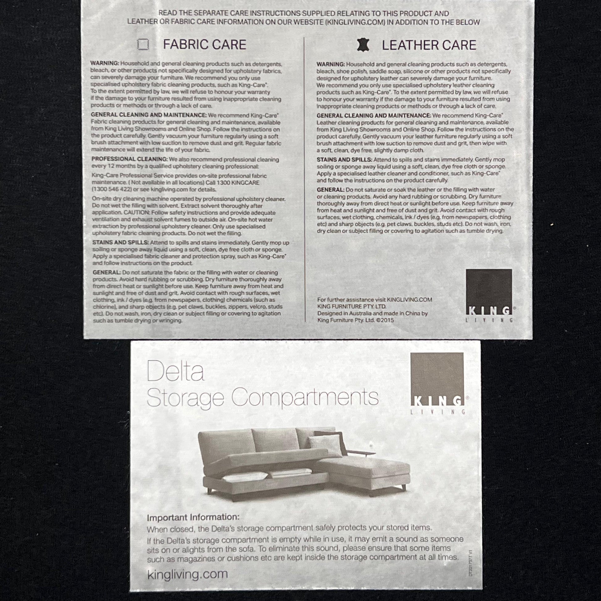 Has storage under both pieces