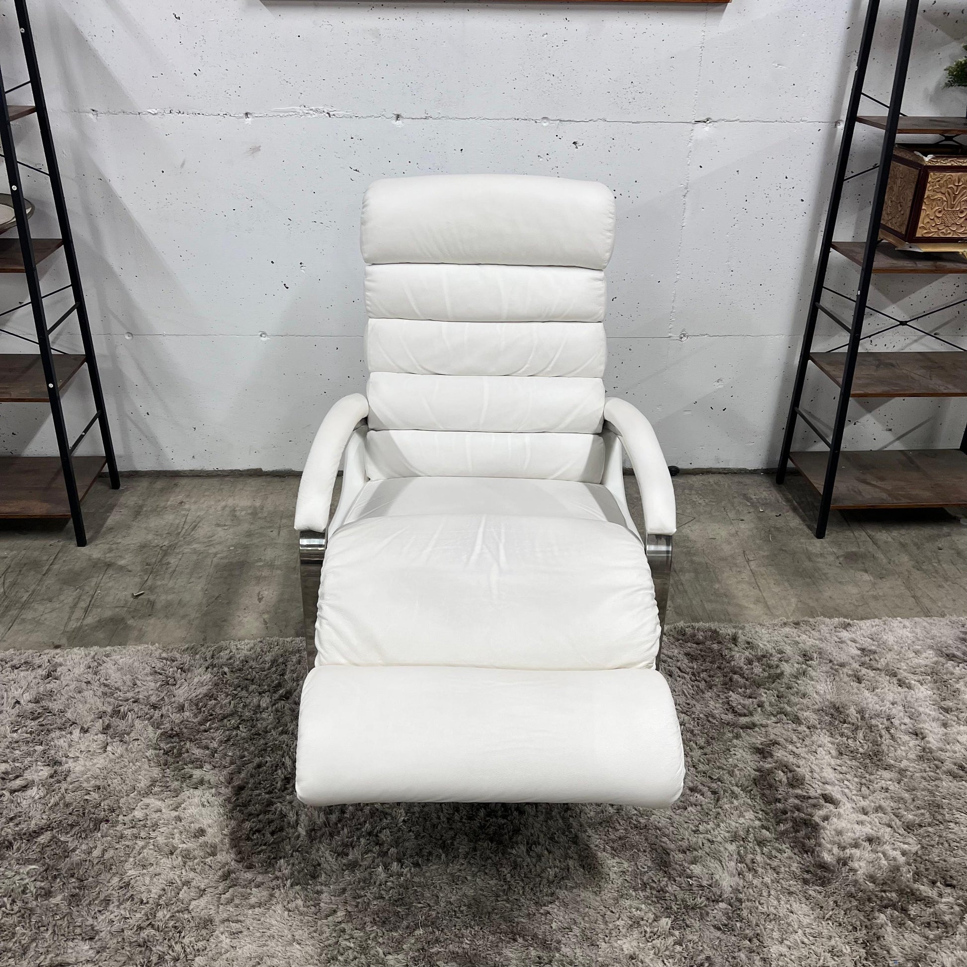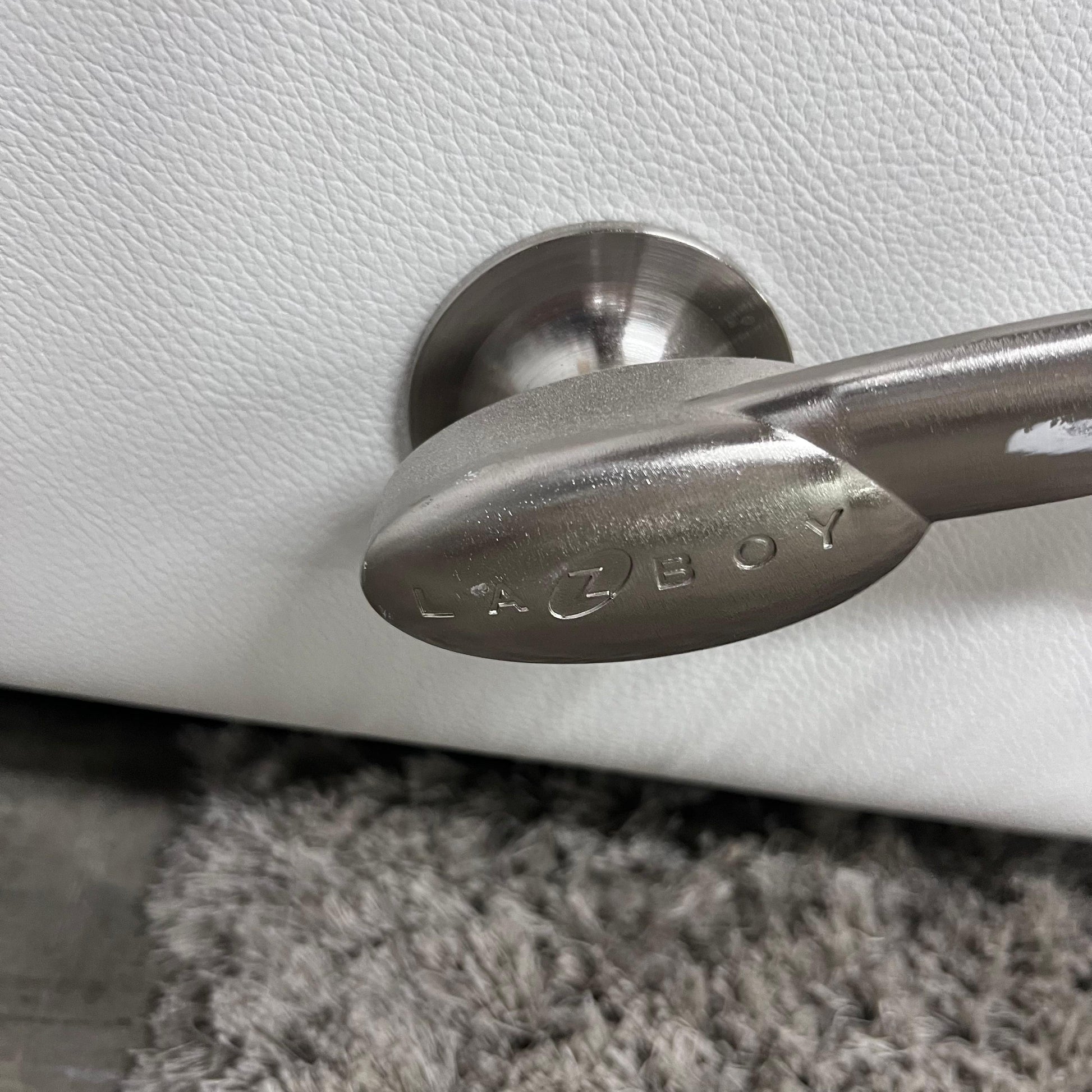 La z boy genuine recliner. White leather reclining chair.