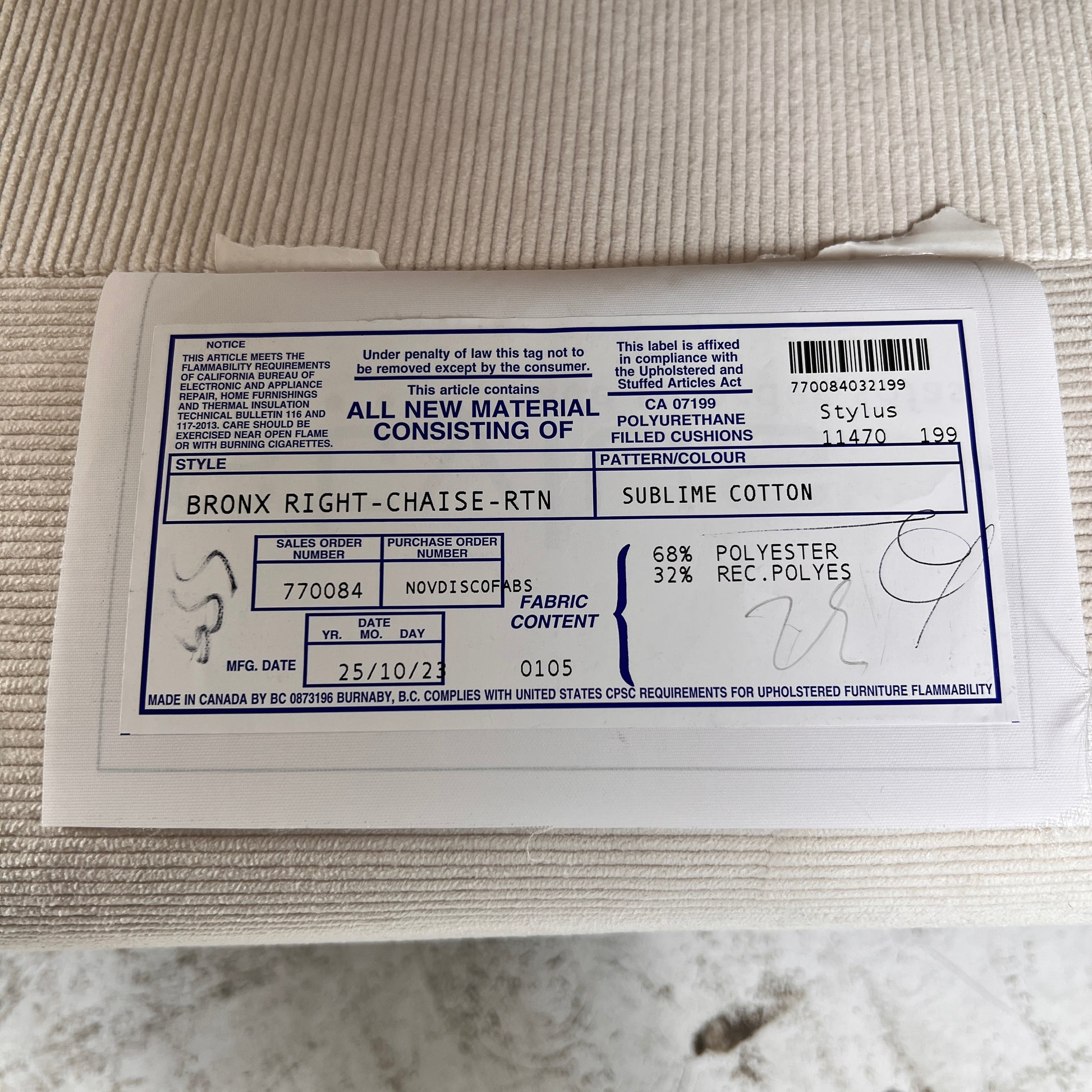 New Stylus Cannon sectional. L shaped sofa couch